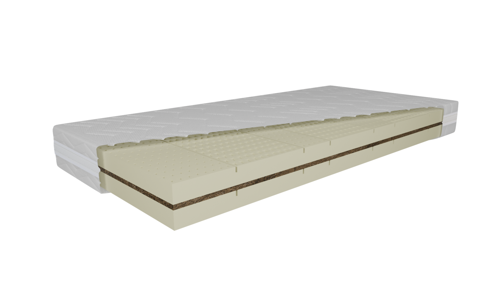 Luxusný zdravotný matrac s nosným jadrom z latexovej peny so 7 diferencovanými zónami tvrdosti. V strede doska z kokosového vlákna zvyšuje tvrdosť a vzdušnosť matraca. Ortopedické a antialergické vlastnosti. Výška 18cm. Vyrába sa v dvoch tvrdostiach. Toto je prevedenie T4.